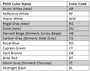 - New PVDF Colors Added