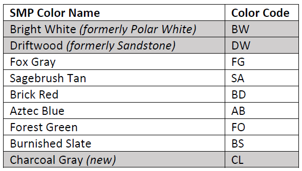 Product Bulletin: Update to Standard Color Offerings
